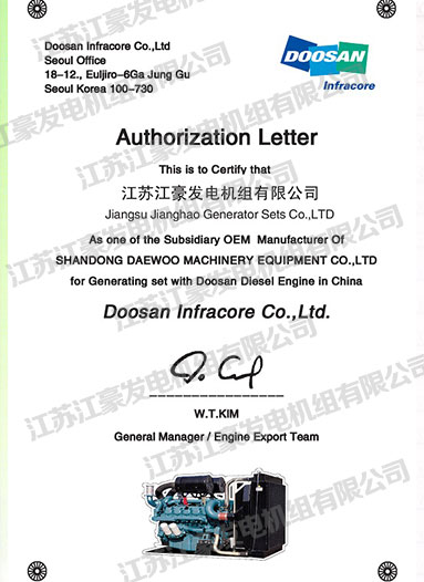 斗山(DOOSAN)OEM授权书
