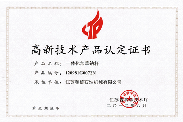 高新技术产品认定证书-加长钻铤